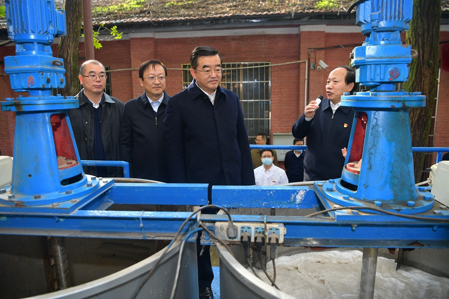 张庆伟首先来到国家重金属污染防治工程技术研究中心,详细了解重金属废水生物制剂处理站工艺流程、科研投入、交流合作等情况。他指出,要坚持“四个面向”特别是面向经济建设主战场,建立以市场为导向、企业为主体、产学研深度融合的技术创新体系,积极对接企业需求,解决企业实际问题,提升技术应用标准,推动科研成果从实验室里走出去,助力打好污染防治攻坚战。