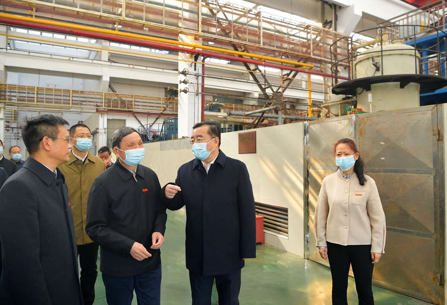走进轻合金研究院,张庆伟深入了解基地建设、制造加工、科技成果转化等情况。他指出,我们在轻合金生产与研究领域具有优势,要增强科技创新自信心,加快推进核心技术攻关,积极开展产学研协同攻关,大力促进科技成果转化,争做行业发展“领跑者”。