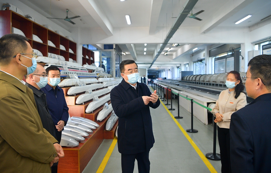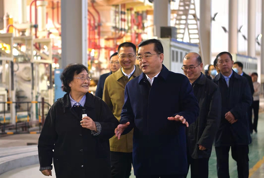 在高速列车研究中心,张庆伟仔细了解轨道交通关键技术最新研究突破及成果转化情况,勉励科研人员不断攀登科技高峰。他强调,要大力弘扬科学家精神,保持恒心和耐心,加强学科建设,加强基础研究,提升自主创新能力,加快实现科技自立自强,在全面落实“三高四新”战略定位和使命任务中彰显更大担当。