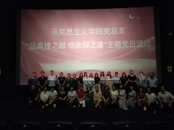 为深入学习贯彻党的二十大精神,根据学习贯彻习近平新时代中国特色社会主义思想主题教育安排,6月13日,马克思主义学院党总支开展了“品真理之甜 悟信仰之道”主题党日活动,引导党员重温红色记忆、传承红色基因、感悟信仰力量,品味真理之甜,组织马克思主义学院全体党员观看了红色影片《望道》。
