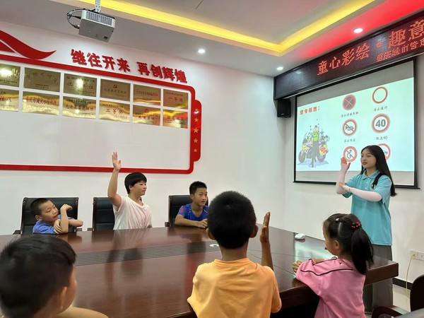 儿童交通安全牵动着千万家庭,为守护儿童平安成长,加强对儿童交通安全的教育,提高儿童交通安全意识,养成良好交通行为习惯,7月7日,我校民政与社会治理学院三水携创实践团在重庆市江津区鼎山街道艾坪社区美林小镇开展“我是小小交警员”实践活动,以志愿者讲解加问答互动的形式宣传交通安全知识,使安全意识深入人心。