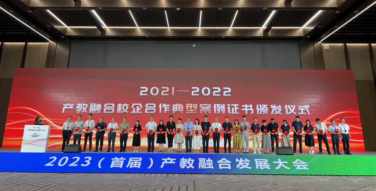 会议以“洞见·破局·新发展——以产教融合促进经济社会和人才高质量发展”为主题,与会嘉宾就人才培养和产业需求“两张皮”问题、产教融合“合而不深”“校热企冷”的痼疾进行了深入交流,并围绕产教融合新形势下,学校、政府、企业等参与主体如何发挥主动性,谋求破局,推动新发展,进行了不同维度的观察与探讨。我院受邀参加了此次会议,根据学院工作安排,学院副院长(主持工作)黄菊英代表学院参加此次会议,并在大会“2021-2022产教融合校企合作典型案例”证书颁发仪式环节,上台领取了我校入选案例荣誉证书。