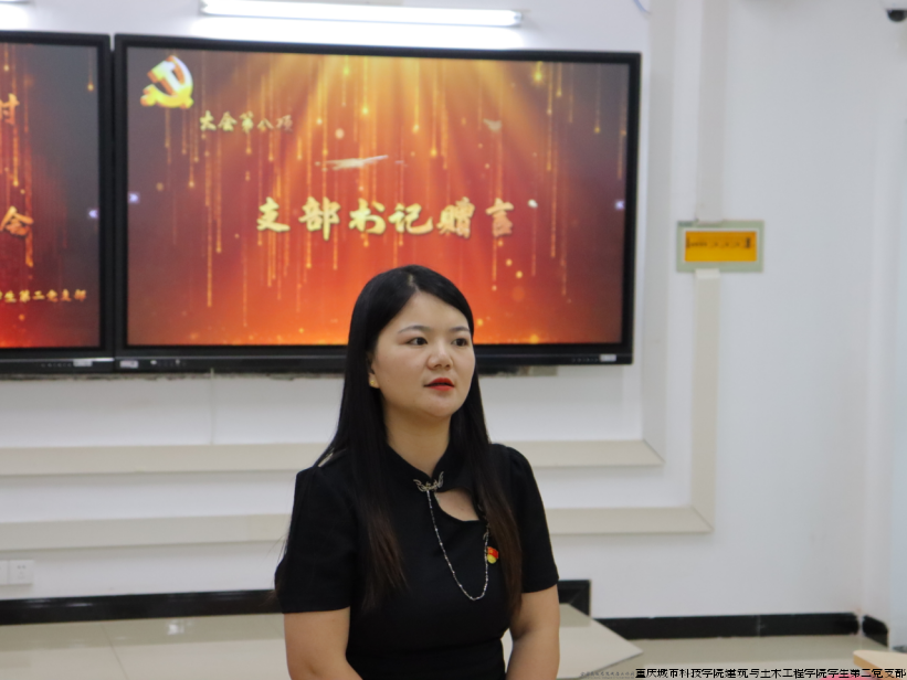 魏姗姗同志为毕业生党员赠言。她回顾了毕业生党员们在校期间的学习、工作和生活情况,对他们取得的优异成绩和为支部发展做出的贡献给予了高度评价,并对毕业生党员代表们分享的经验总结和成长经历表示感谢;同时也提出了殷切期望,希望他们能够坚定理想信念,勇于担当时代使命,不忘初心、牢记使命,在新的工作岗位上继续发挥党员的先锋模范作用,为国家和社会的建设贡献自己的力量;最后由衷祝贺毕业生党员们即将走出校园,走向社会,开启人生新篇章,希望毕业生党员们能常回家看看。