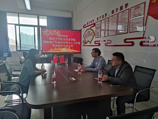 4月3日,重庆工贸职业技术学院科研开发处副处长杨杰、肖冲主任、黄思雨老师一行至通工与通运双带头人工作室调研交流党建工作。