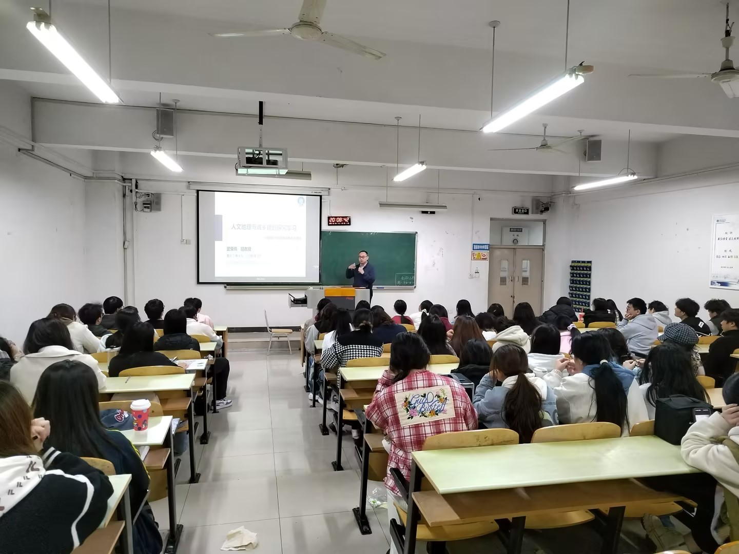 2024年11月20日,重庆工商大学人文地理与城乡规划专业教育讲座在江北校区B106举行。支部党员老师、城乡规划系主任曹珂,系部其他老师及24级人文地理与城乡规划专业全体同学参加了此次活动。活动由支部党员老师曹珂主持。