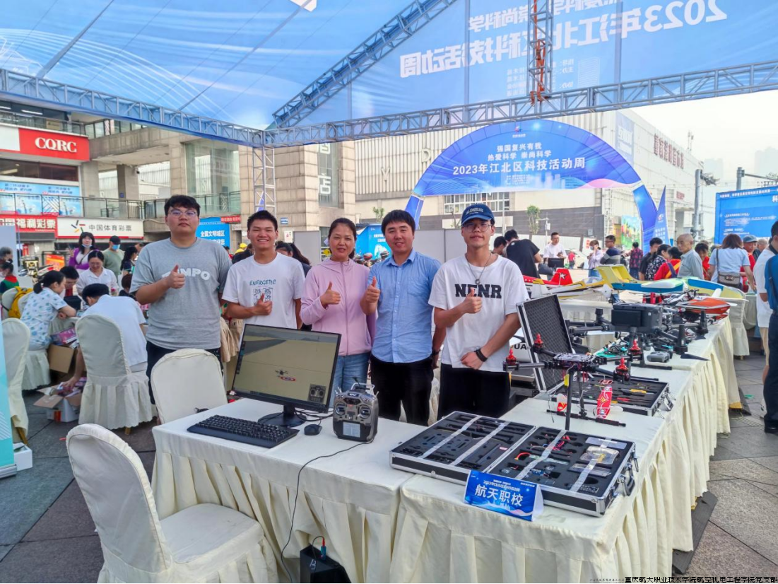 杨雄(右二)在地方科技活动周中开展无人机公益科普宣传。