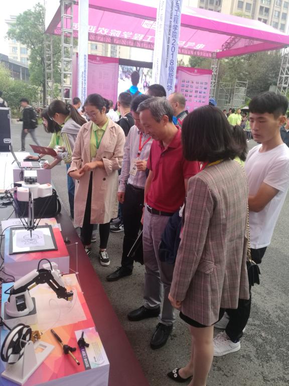 为了让新生及家长们更好地了解和体验学院的专业特色,并从中提高专业学习兴趣,学院将实验室的科研成果进行了展示,其中包括写字机器人、绘画机器人、三轴云台增温系统、基于Arduino的两轮平衡小车、基于微信的超市购物结算系统、VR模拟驾驶、VR玩具熊游戏等。每个展台前都吸引了很多新生的围观,他们一边体验一边禁不住的感叹,“很炫”、“科技感十足”成为了大多数新生们对此次科技展的第一印象,但他们更兴奋的是不久自己也将进入这个专业领域。“让新生对专业有一次记忆深刻的初体验,希望新生们能在这个展览中找到打动自己的某个点,在未来学好专业,做出有价值的东西。”这就是此次科技成果展的意义所在。