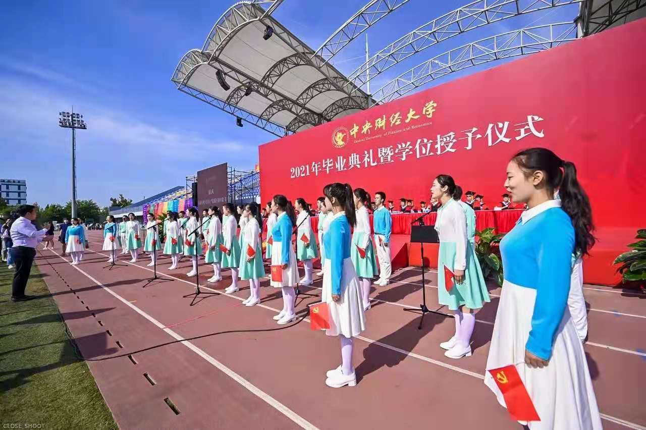 7月2日上午,中央财经大学2021年毕业典礼暨学位授予仪式在沙河校区体育场隆重举行,学院南路校区也开设了分会场同步组织线上观礼,两万余人次通过学校官方短视频平台观看了典礼实况直播。
