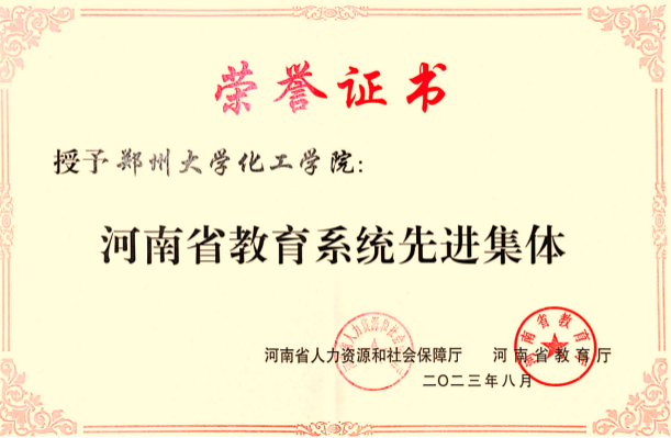 化工学院党委入选全国党建工作标杆院系培育创建单位,学院荣获2023年度河南省教育系统先进集体,化学工程与工艺系党支部入选首批河南省高校样板党支部,制药工程系党支部和行政党支部先后获批河南省高校先进基层党组织,博士生党支部入选河南省党建工作样板支部,学生团支部获评河南省五四红旗团支部;学院师生先后荣获河南省高等学校优秀共产党员、全国百名研究生党员标兵、河南省教科文卫体系统“工匠人才”、“师带徒”标兵、“优秀教师”、“出彩河南人”最美大学生、河南省百优十佳“魅力团支书”等荣誉称号。