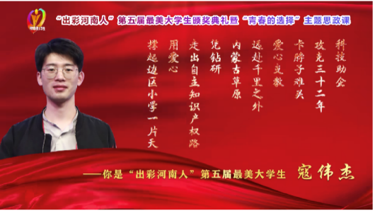 寇伟杰荣获“出彩河南人”第五届最美大学生