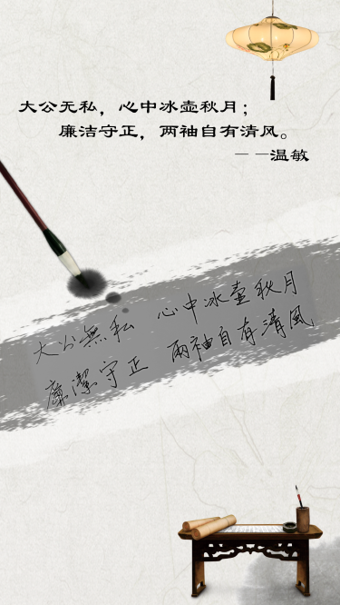 2、大公无私,心中冰壶秋月;廉洁守正,两袖自有清风。(温敏)