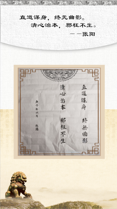 3、直道谋身,终无曲影;清心治本,邪枉不生。(张阳)