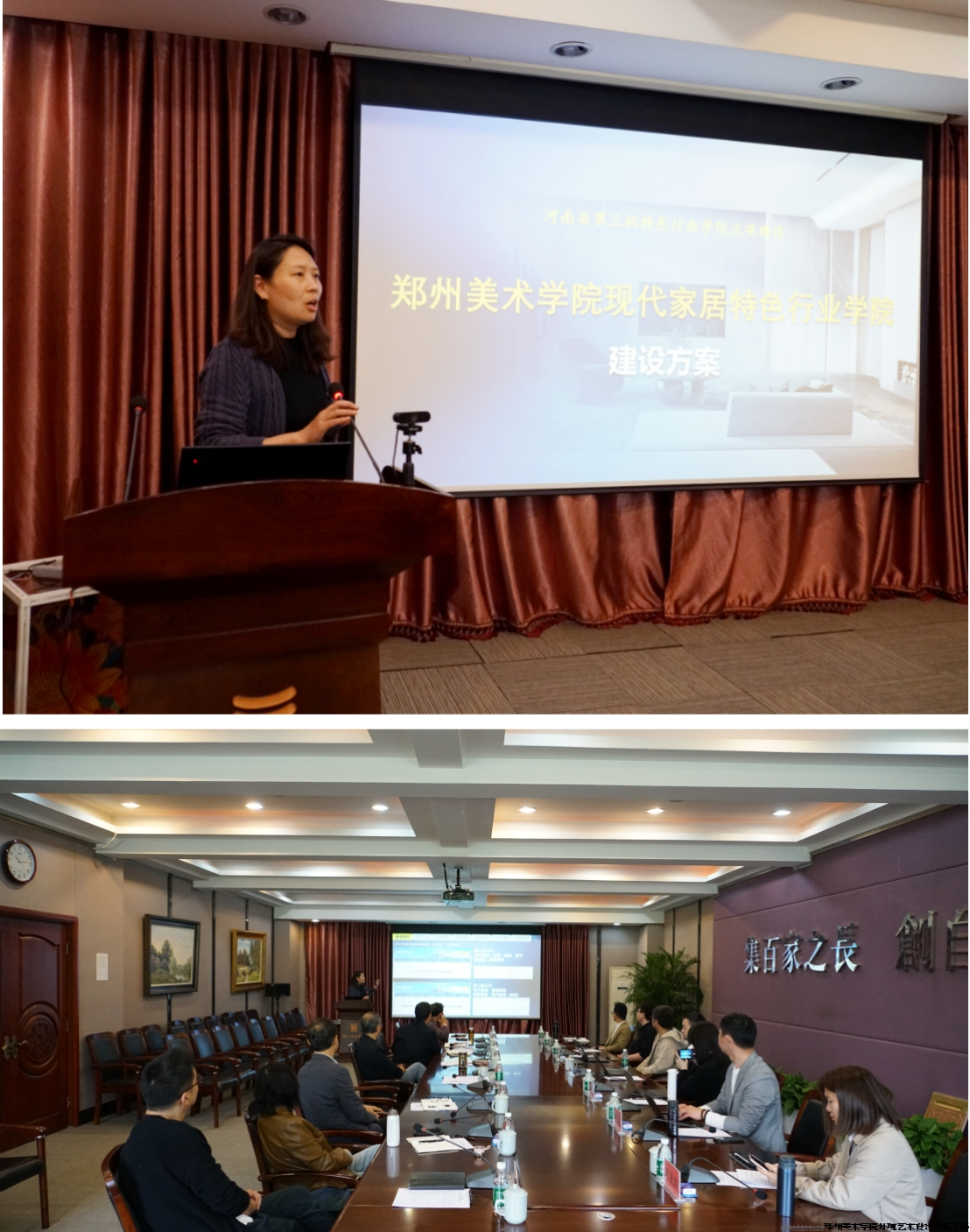 2025年4月7日上午,环境艺术设计系党支部书记王红参加郑州美术学院与郑州大信家居有限公司召开现代家居特色行业学院建设研讨会。此次会议旨在深入贯彻落实河南省教育厅、河南省工业和信息化厅《关于公布河南省本科高校第三批省级特色行业学院和省级重点现代产业学院建设》文件精神,支撑河南深化28个重点产业链建设中现代家居产业链高质量发展人才需求,扎实推进“四新”建设,深化产教融合、协同育人,加强郑州美术学院内涵与特色建设。