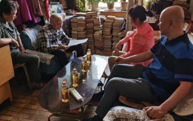 退休老教授朱政贤先生家中,接受图书捐赠。此次朱先生捐赠书刊560册,实验报告、会议论文、图纸、证书等特种文献资料90盒。